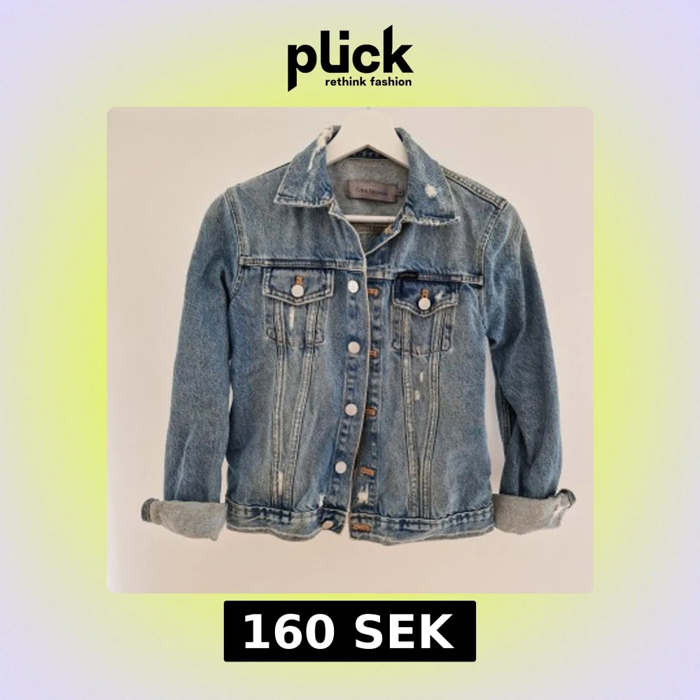 Snygg blå jeansjacka från Calvin Klein Jeans i klassisk modell med knappar framtill och två bröstfickor. Jackan har slitna detaljer och uppvikta ärmar för en chill vibe. Perfekt att slänga över en hoodie eller t-shirt för en cool streetstil. Tyget har gulnat något på ryggen men annars i fint skick.