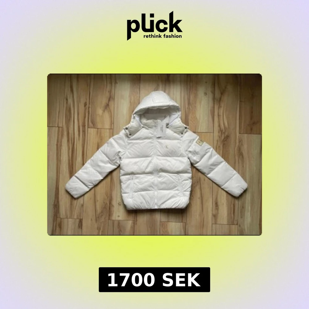 Säljer en snygg vit pufferjacka från Calvin Klein med avtagbar huva och dragkedja framtill. Jackan är helt ny med prislapp kvar. Den har CK-logga på bröstet och patch på ärmen, samt två praktiska fickor med dragkedja. Perfekt för kalla dagar och riktigt clean look.