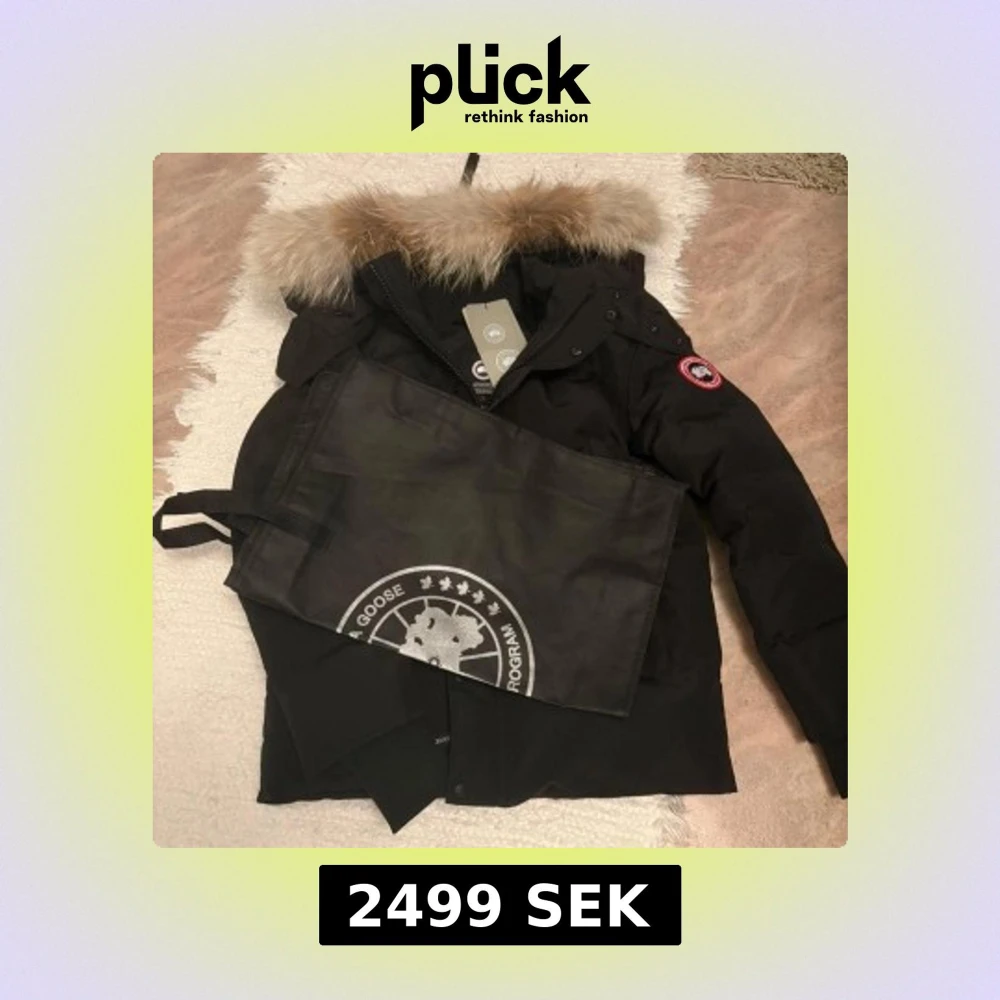 Säljer en svart Canada Goose dunjacka med ikonisk patch på ärmen och stor fluffig päls runt huvan. Jackan har dragkedja och knappar framtill, samt en klassisk vinterlook som håller dig varm. Perfekt för kalla dagar och riktigt snygg streetstil.