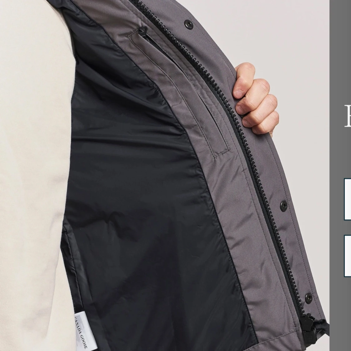 Grå dunjacka från Canada Goose - Säljer en grå dunjacka från Canada Goose med huva och avtagbar fuskpäls. Jackan har klassisk patch på ärmen, dragkedja och knappar framtill samt ribbade muddar vid ärmslut. Perfekt för kalla vinterdagar och har en clean, modern look.