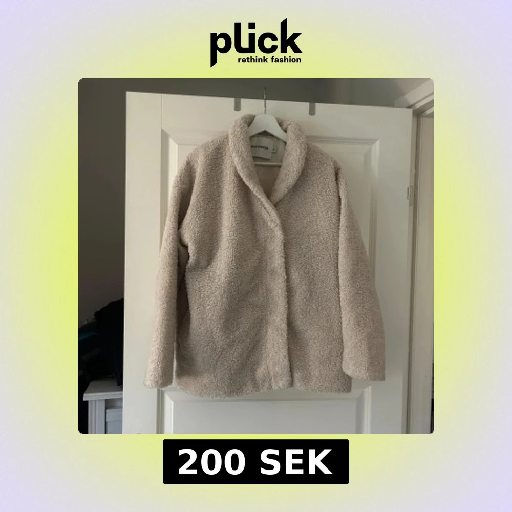 Mysig beige/ creamvit teddyjacka från Carin Wester med långa ärmar och en avslappnad oversized passform. Perfekt för kyliga dagar när du vill hålla dig varm och stilren. Jackan har en enkel design utan synliga detaljer som dragkedjor eller knappar.