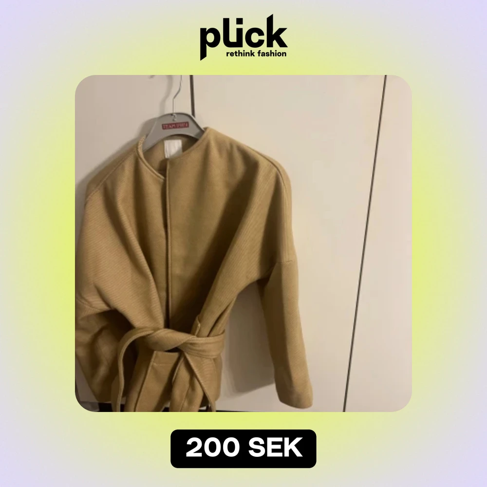 Säljer en stilren beige kavaj från Max Mara. Den har en elegant knytning i midjan och långa ärmar. Perfekt för både höst och vår, och funkar lika bra till vardags som till fest. Superfin och i bra skick!