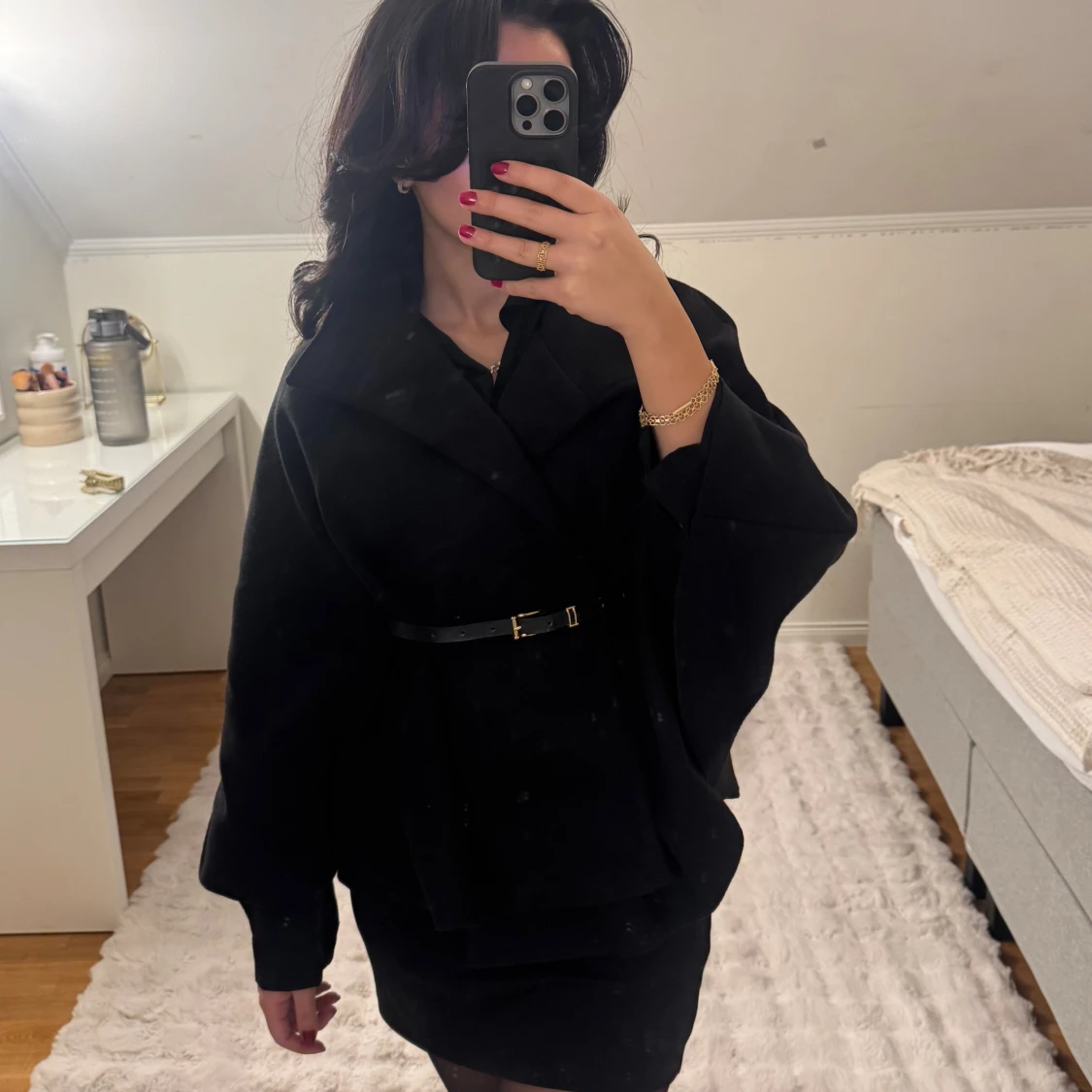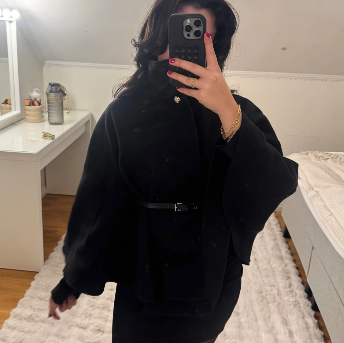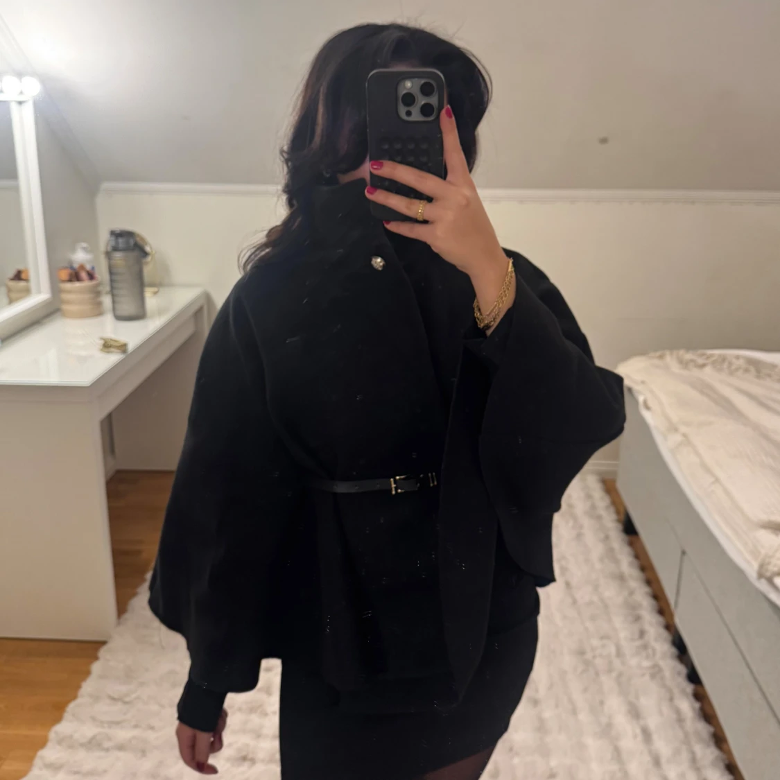 Säljer min svarta poncho med skärp, knappt använd den så den är i väldigt bra skick. One size