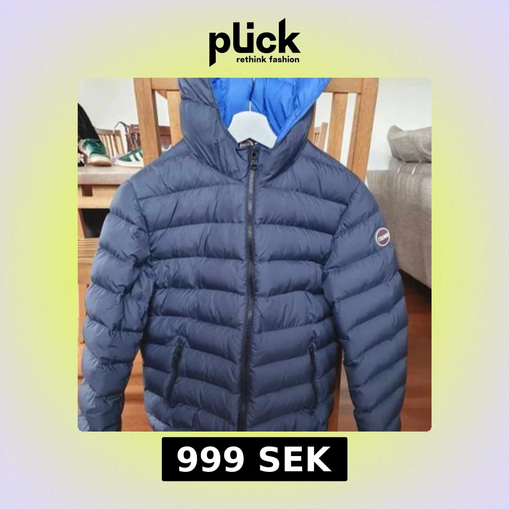 Säljer en mörkblå pufferjacka från Colmar med huva och blått foder. Jackan har dragkedja framtill, två fickor med dragkedja och en klassisk logga på ärmen. Supervarm och passar även till skidåkning. Använt ganska mycket, fortfarande inga skavanker.