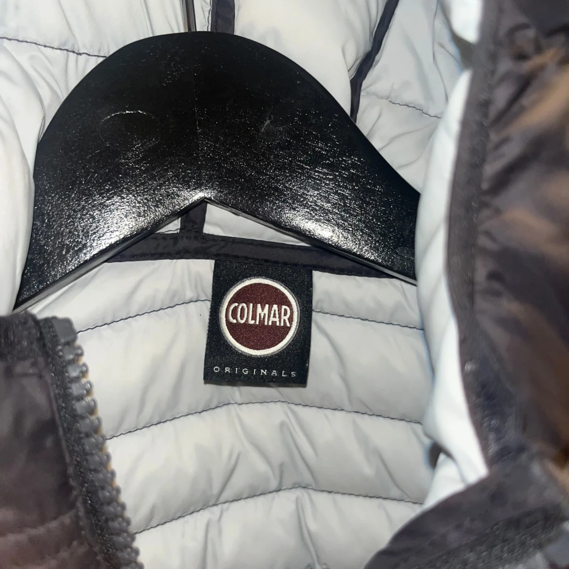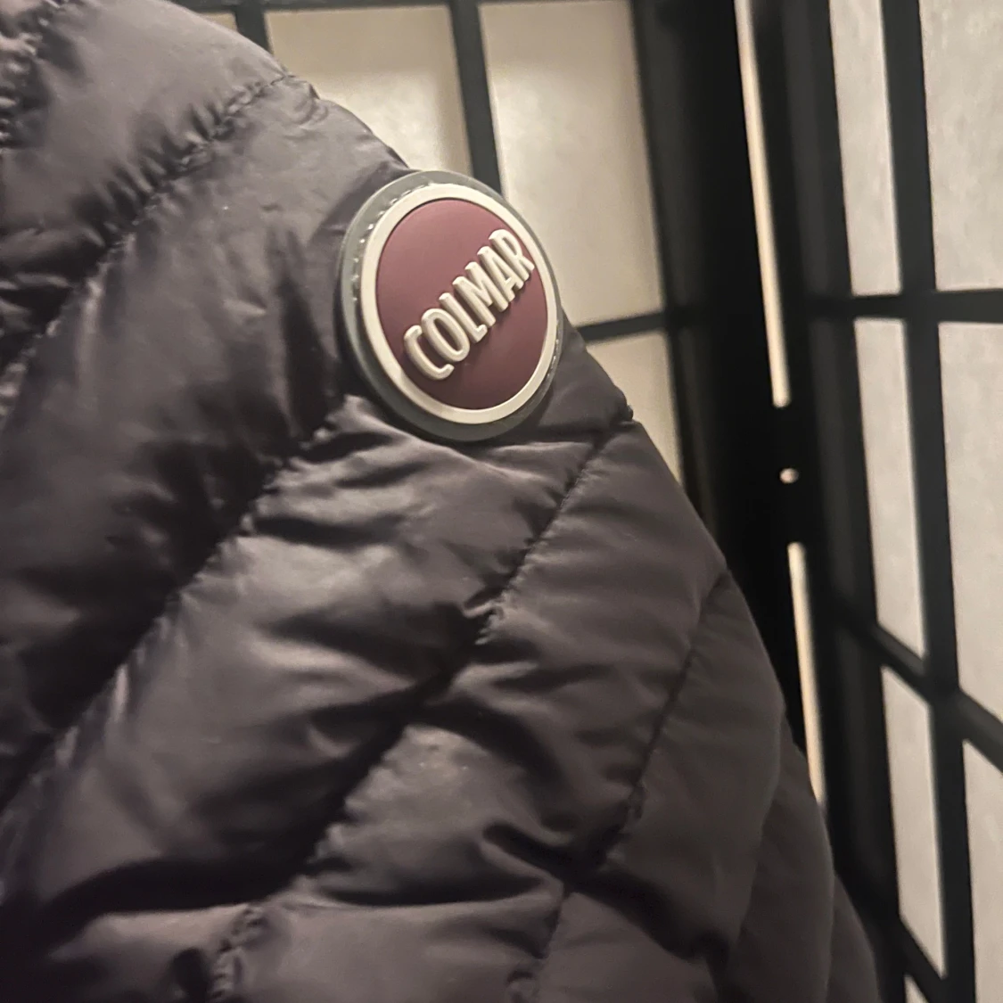 Snygg svart dunjacka från Colmar med quiltad design och huva. Jackan har dragkedja framtill och två dragkedjefickor. Insidan är ljusgrå och axeln pryds av Colmar-logga. Perfekt för kalla och varma dagar när du vill hålla stilen.