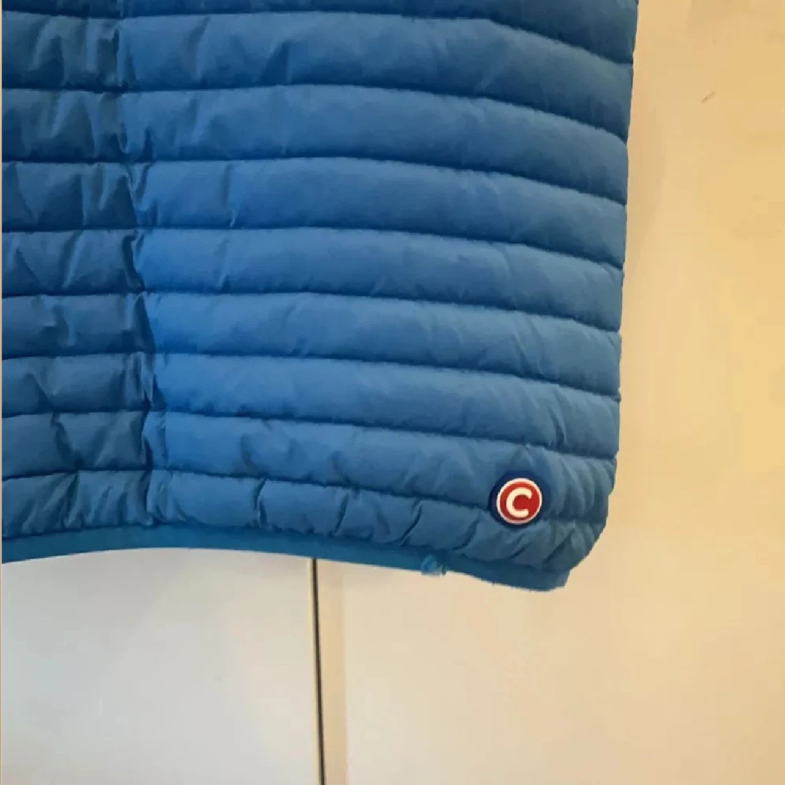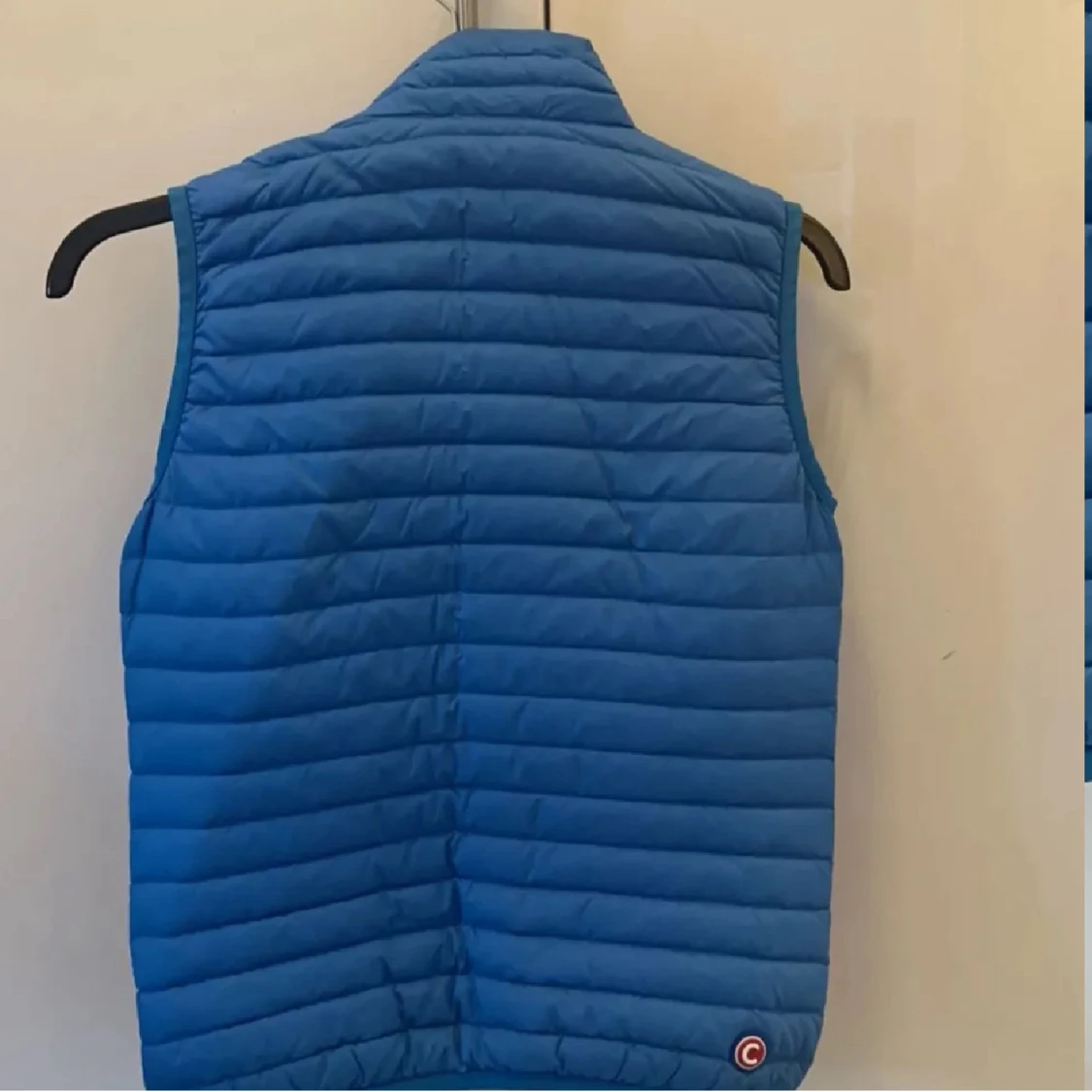 Snygg blå dunväst från Colmar med quiltad design och dragkedja framtill. Västen har två fickor med dragkedja och en rund Colmar-logga på bröstet. Perfekt för lager-på-lager och chill stil.