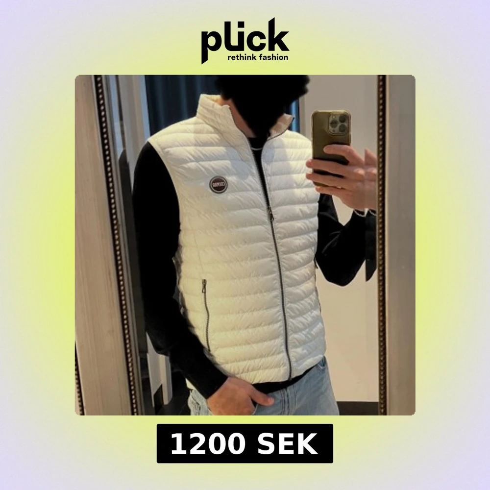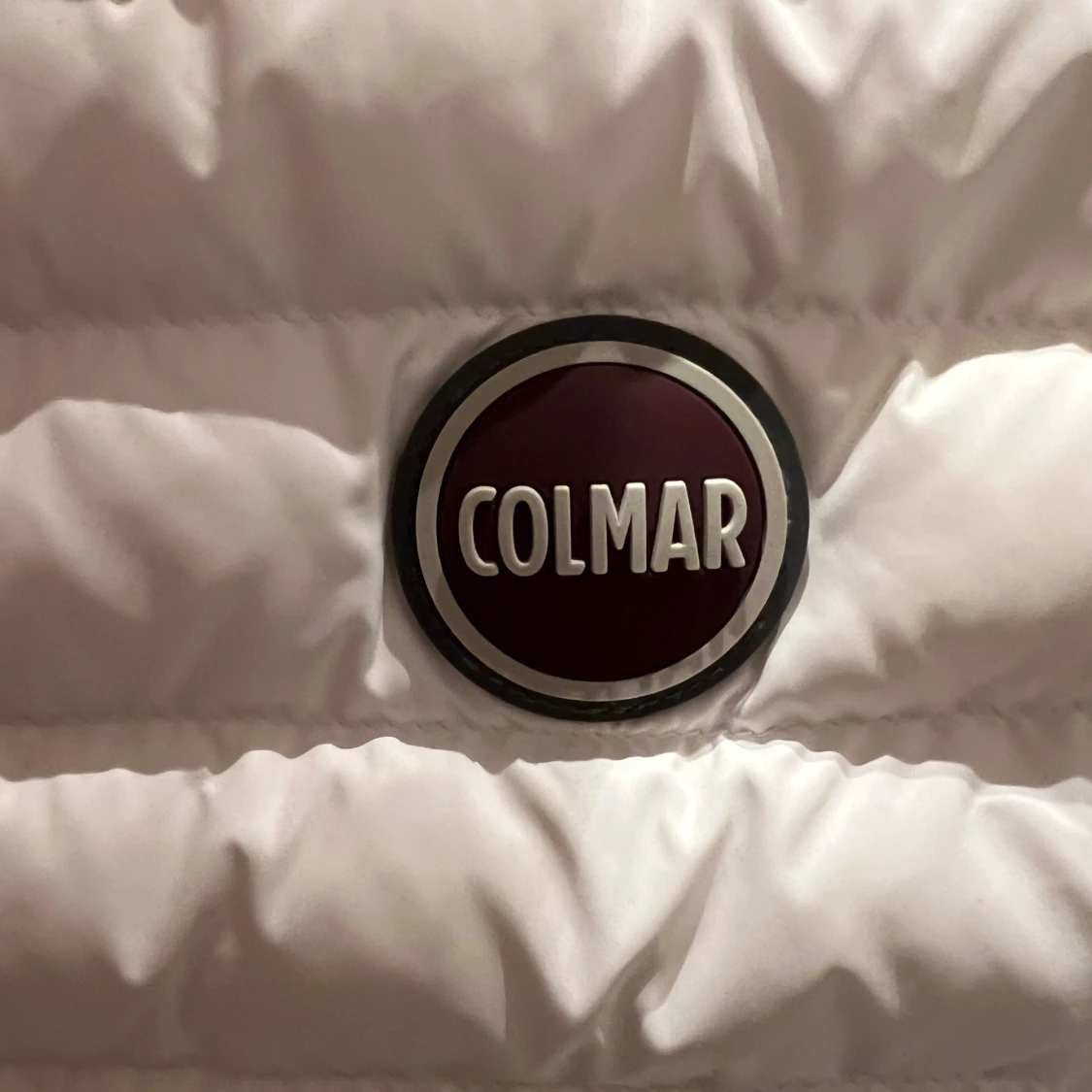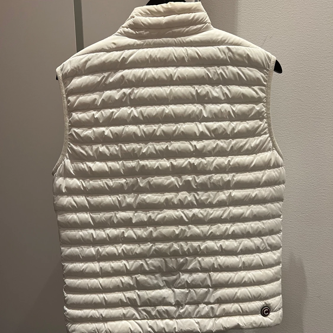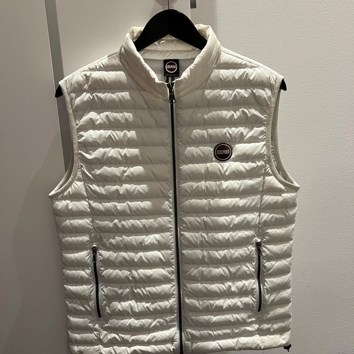 Snygg vit dunväst från Colmar med quiltad design och hög krage. Västen har dragkedja framtill, två fickor med dragkedja och en rund Colmar-logga på bröstet. Mycket fint skick, inga defekter. Storlek 48 vilket motsvarar S