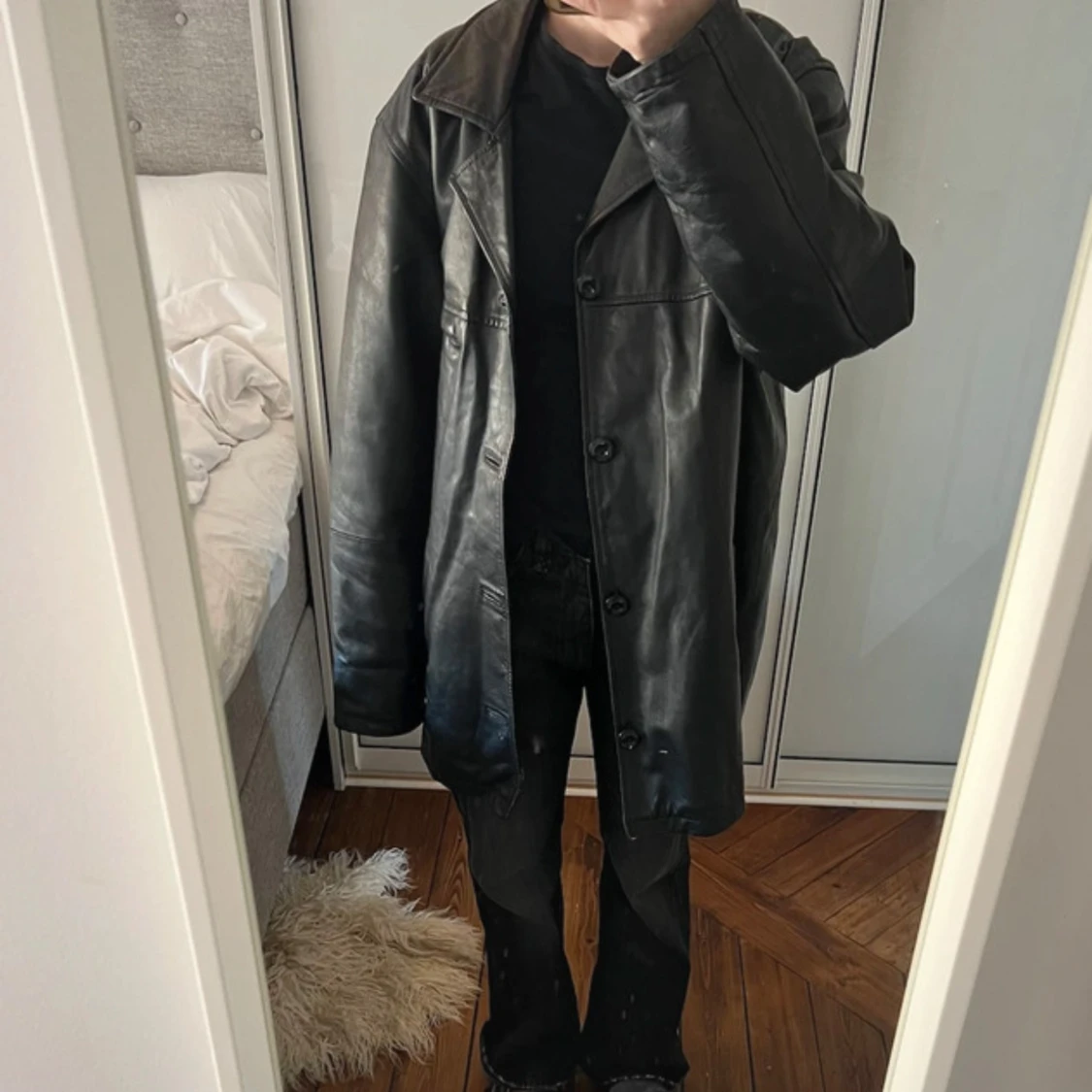 🎀jättecool läderjacka!! 🎀 längd: 80cm, axelbredd: 51cm, armlängd: 64cm 🎀skriv vid funderingar! . . • ☆ . ° .• °:. *₊ ° . ☆˚ ♡ ·˚ ₊˚ˑ