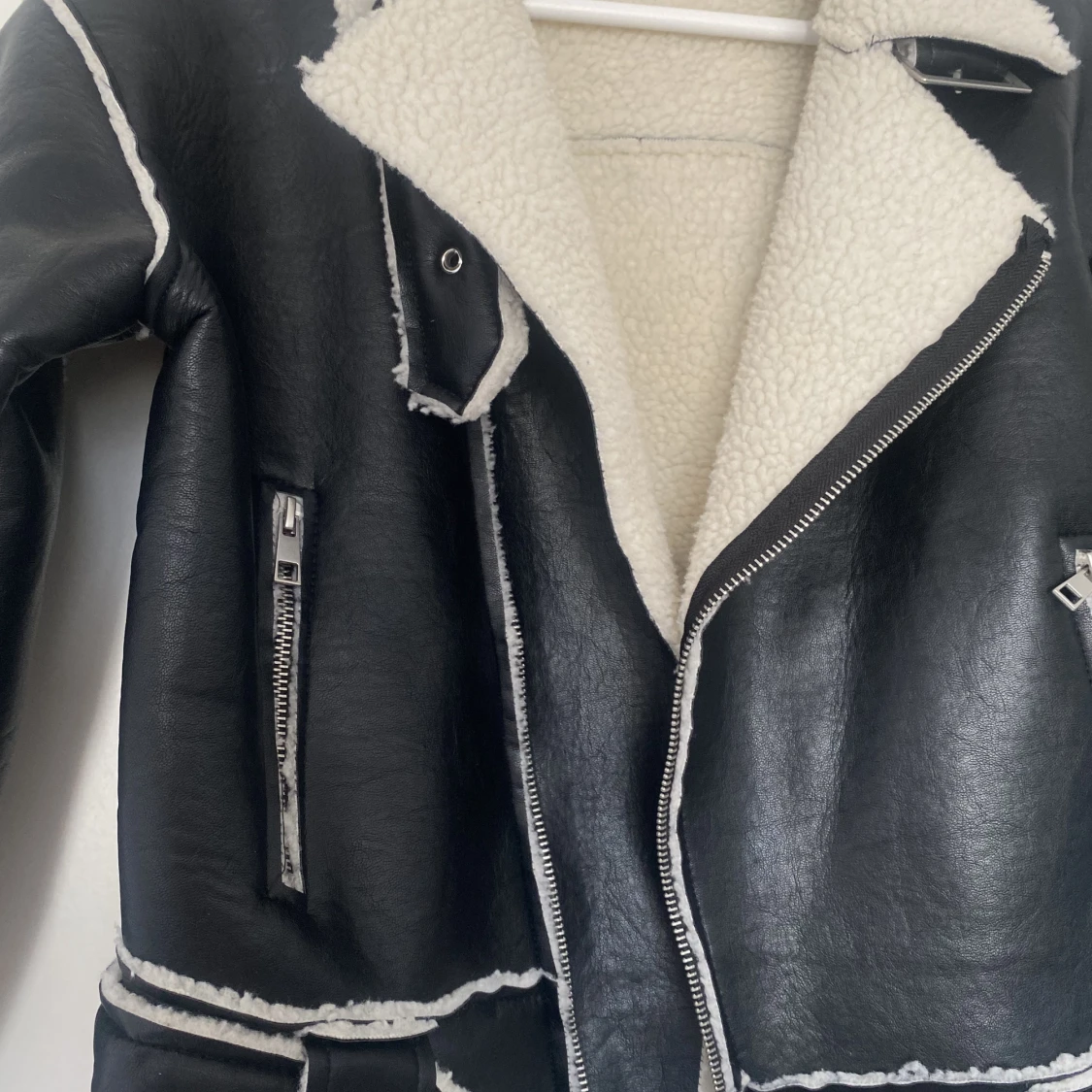 Cool läder jacka från Nelly med Flyffig insida och snygga detaljer! Använd 5 ggr pris kan diskuteras! Jag är S och den passa mig