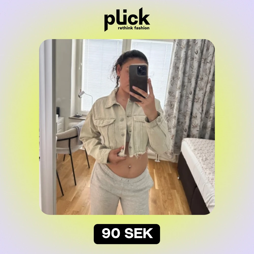 Beige jeans jacka från plt som jag inte använt mycket. Den är perfekt för att ha över en outfit utan att föstöra den, då den är kort beige.