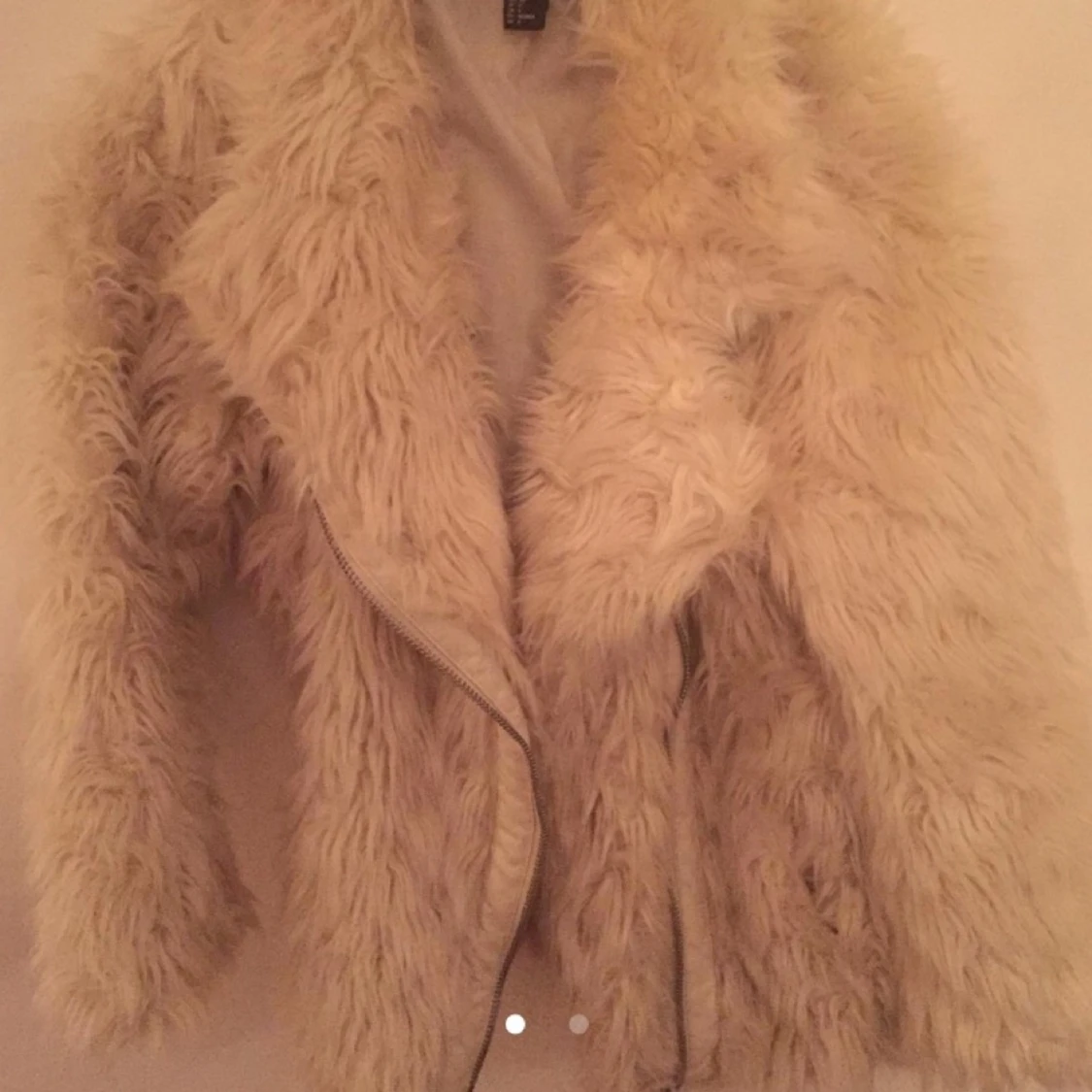 Fakepäls jacka från HM, Sned i stängningen med dragkedjan, väldigt fint. Strl M, Även L får plats så den är ganska stor för att vara en M