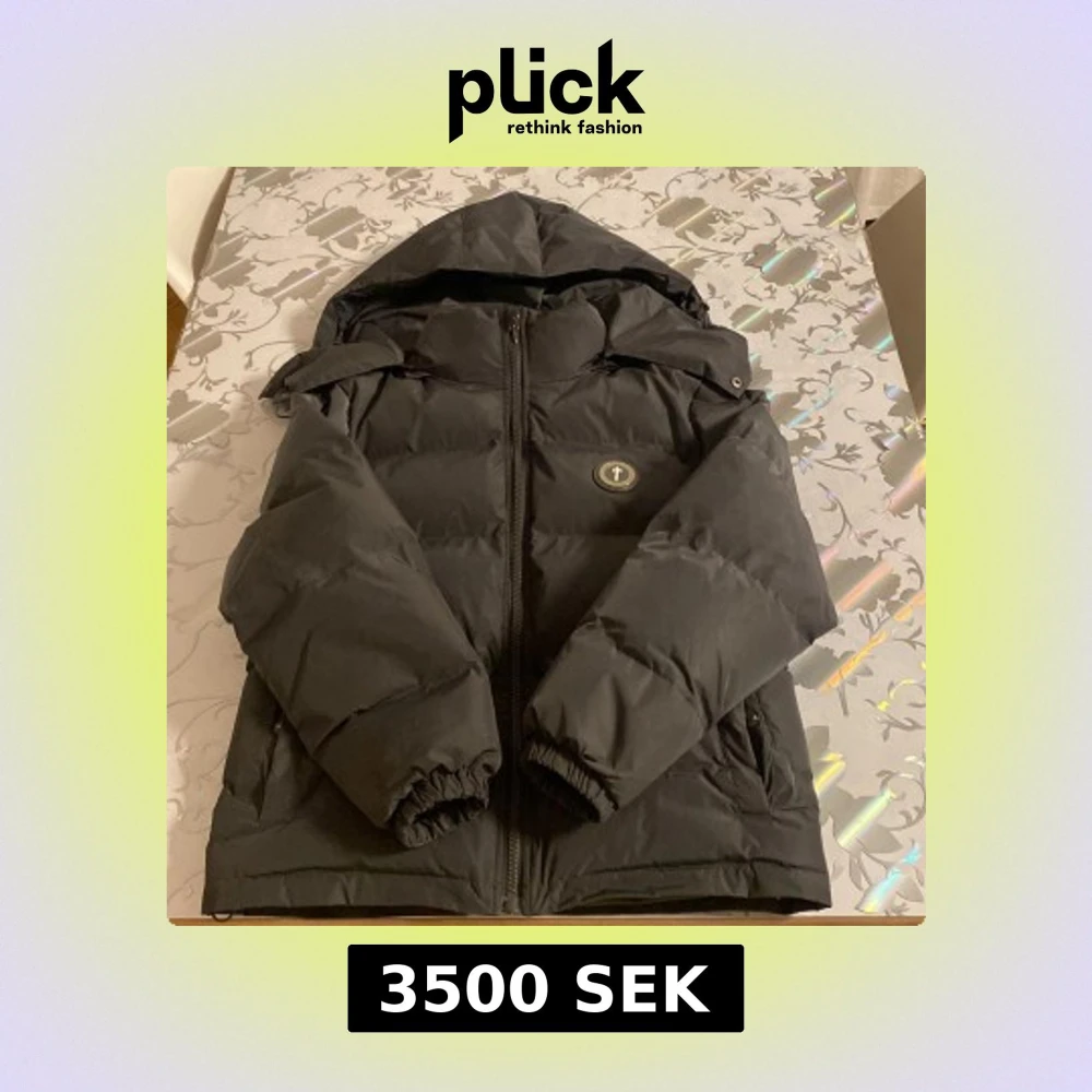 Snygg grå pufferjacka från Trapstar med broderad text på ryggen och ett runt märke på bröstet. Jackan har en dragkedja framtill och en stor huva för extra värme. Perfekt för kyliga dagar! Inga problem med jackan exakt som ny, knappast använd.