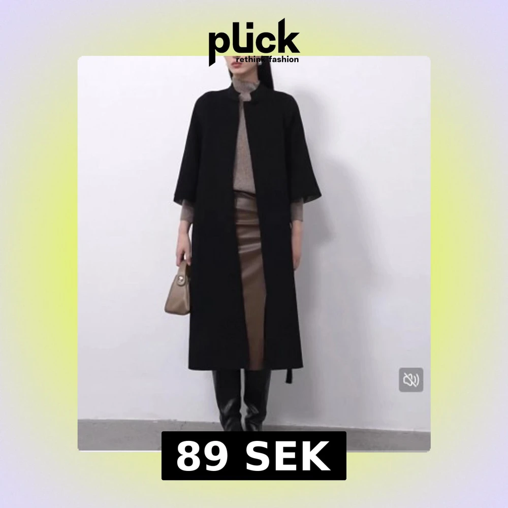 Stilren svart kappa med rak passform och trekvartsärm . Kappan har enkel design med knappar framtill och är gjord i mjukt ullmaterial. Perfekt för dig som gillar minimalistisk look och vill ha något som funkar till många outfits.