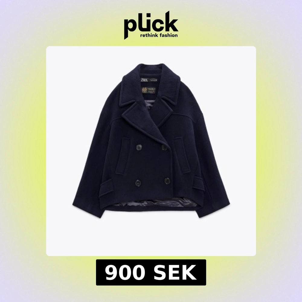 Snygg mörkblå kappa i ull från Zara med dubbelknäppning och bred krage. Jackan har en klassisk design med två framfickor och är perfekt för kyligare dagar. Tillverkad i samarbete med Manteco för en lyxig känsla. Nypris 1395kr