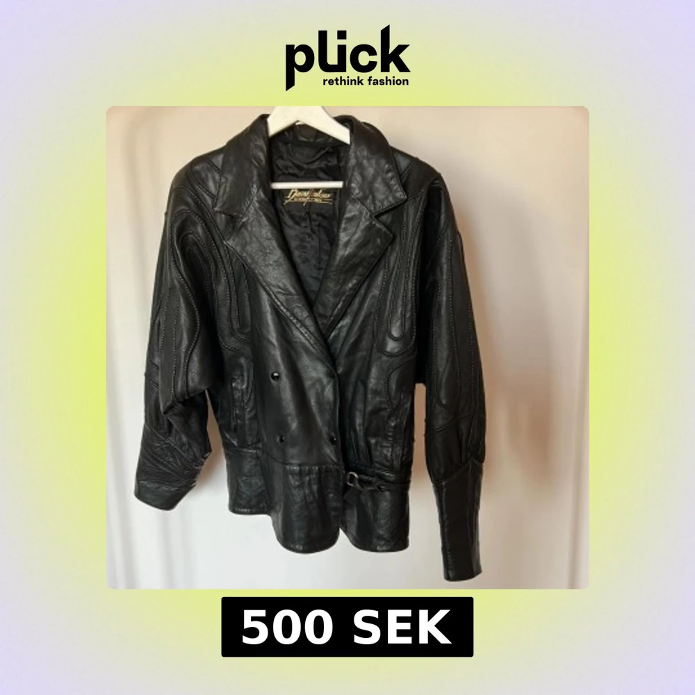 Unik svart skinnjacka från Brant Montana med coola broderade detaljer på ärmarna, dubbelknäppning och bred krage. Jackan har bälte i midjan och snygga knappar framtill. Står strl 48 men uppfattar mer som en italiensk storlek så 44 är mer sann. Vilket är M-L