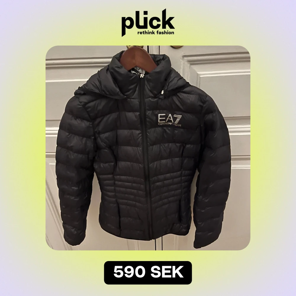 Säljer en snygg svart dunjacka från Emporio Armani EA7. Jackan har en dragkedja framtill och är perfekt för kyliga dagar. Den är i mycket bra skick och har en normal passform. Perfekt för höst och vinter!