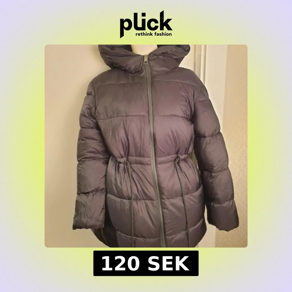 Säljer en mysig svart dunjacka med huva och dragkedja framtill. Jackan har en puffig design och justerbar midja för en bekväm passform. Lite skrynklig då den förvarats, annars i mycket bra skick, som ny.