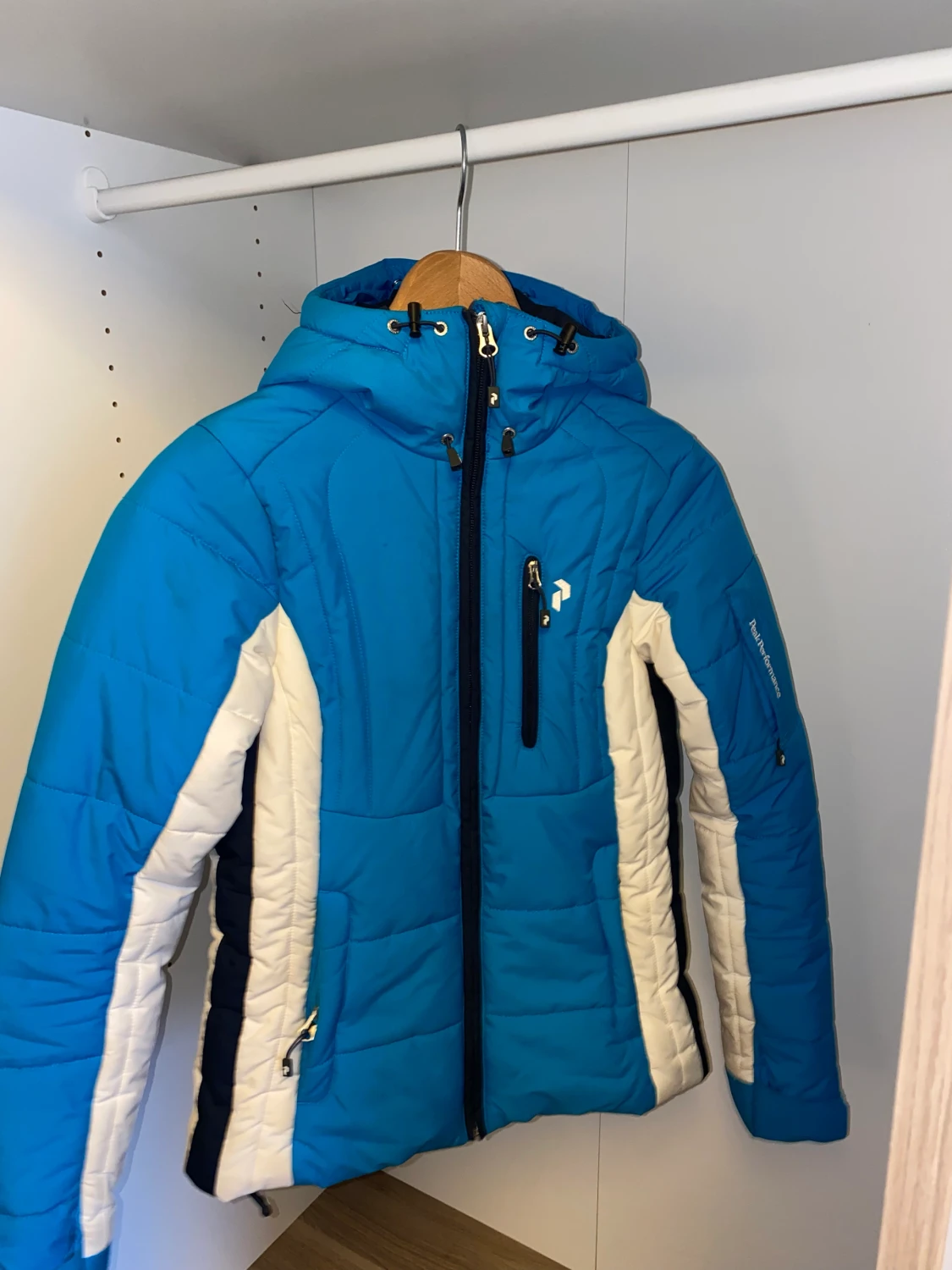 Använd 1 skidsäsong. Väldigt fint skick och bra skidjacka med fickor på flera ställen & bra värme. Tar gärna emot bud! Fanns en fuskpäls till som slängts så den kommer utan.