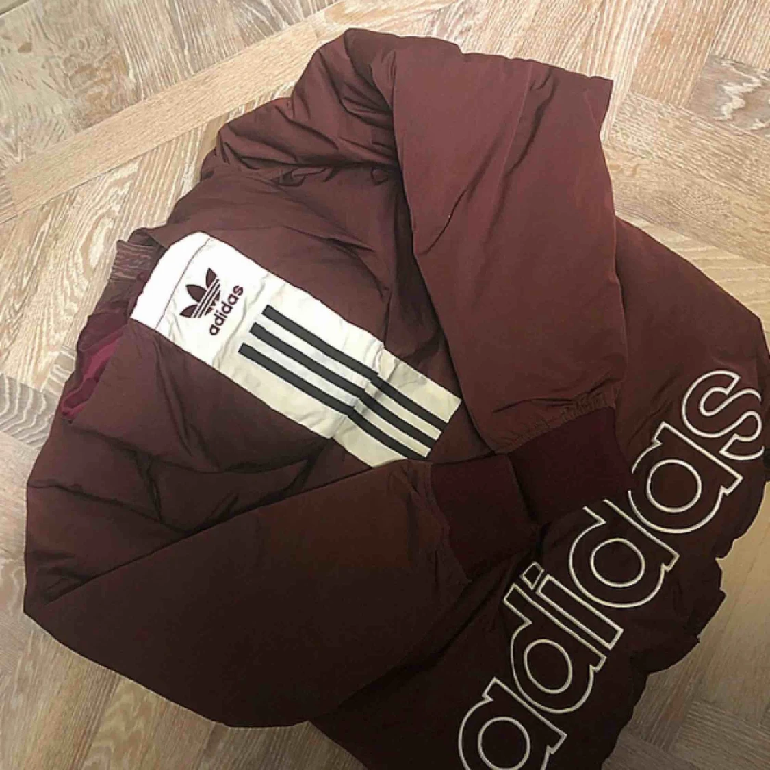 Slumpar bort denna fantastiskt sköna dunjacka från Adidas. Inte mycket använd men sänkt pris pga att det finns två små vita fläckar framtill som jag inte vet om dem går att få bort :-) dyr i inköp. Passar XS/S.