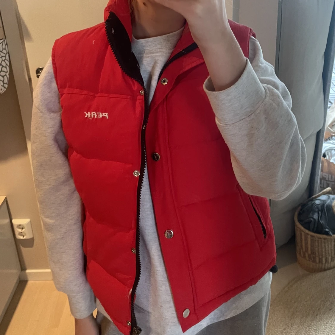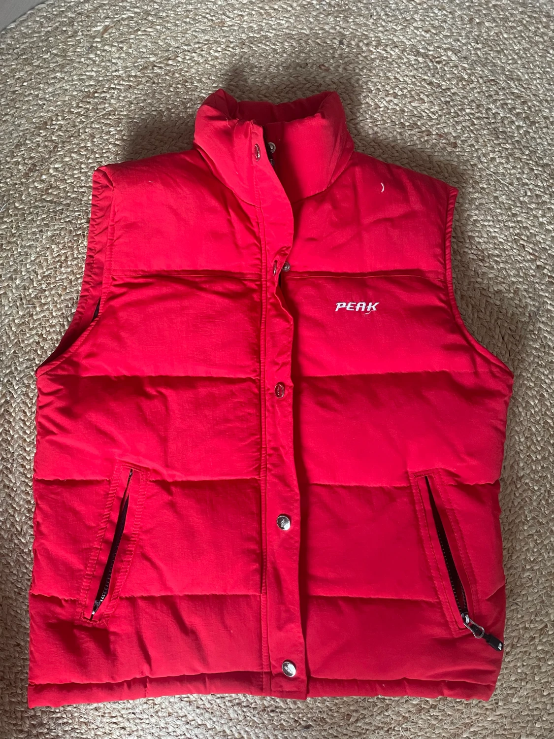 Jag säljer min röda peak performance väst. Den är i bra skick och det är en L men den är liten i storleken så passar på mig som är mellan S-M. Hör av er vid intresse!