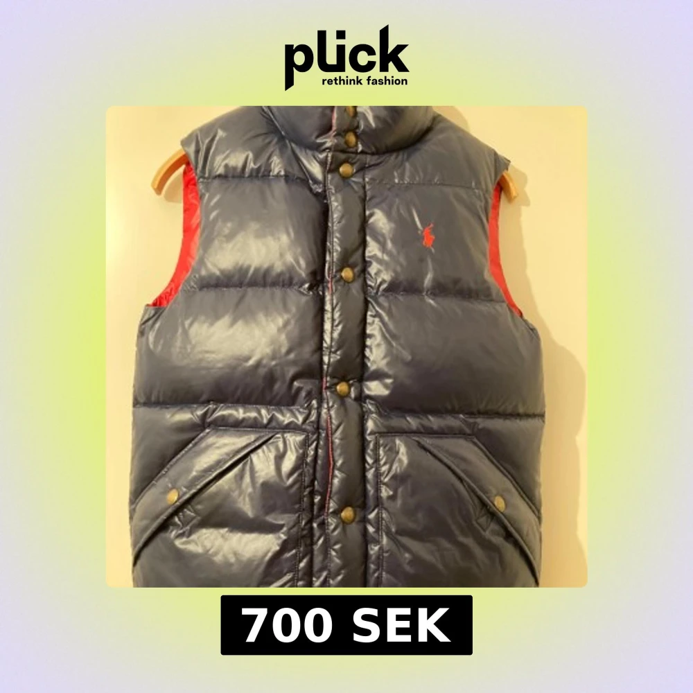 Snygg vändbar dunväst för barn från Polo Ralph Lauren i marinblått och rött. Storlek 10-12 år. Västen har knappar och den klassiska loggan på bröstet. Perfekt för att hålla värmen med stil. Använd ett par gånger under en säsong.