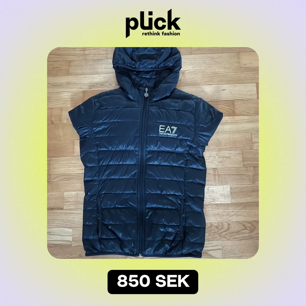 EA7 jacka - En tunn dunnjacka. Perfekt för våren/hösten. Strl L men passar mig som bär s då jag ville ha den lite oversized..