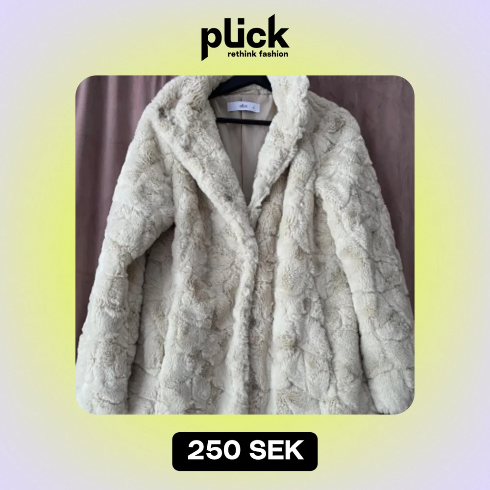 Beige fluffig medium lĂ„ng jacka i storlek 36đ
