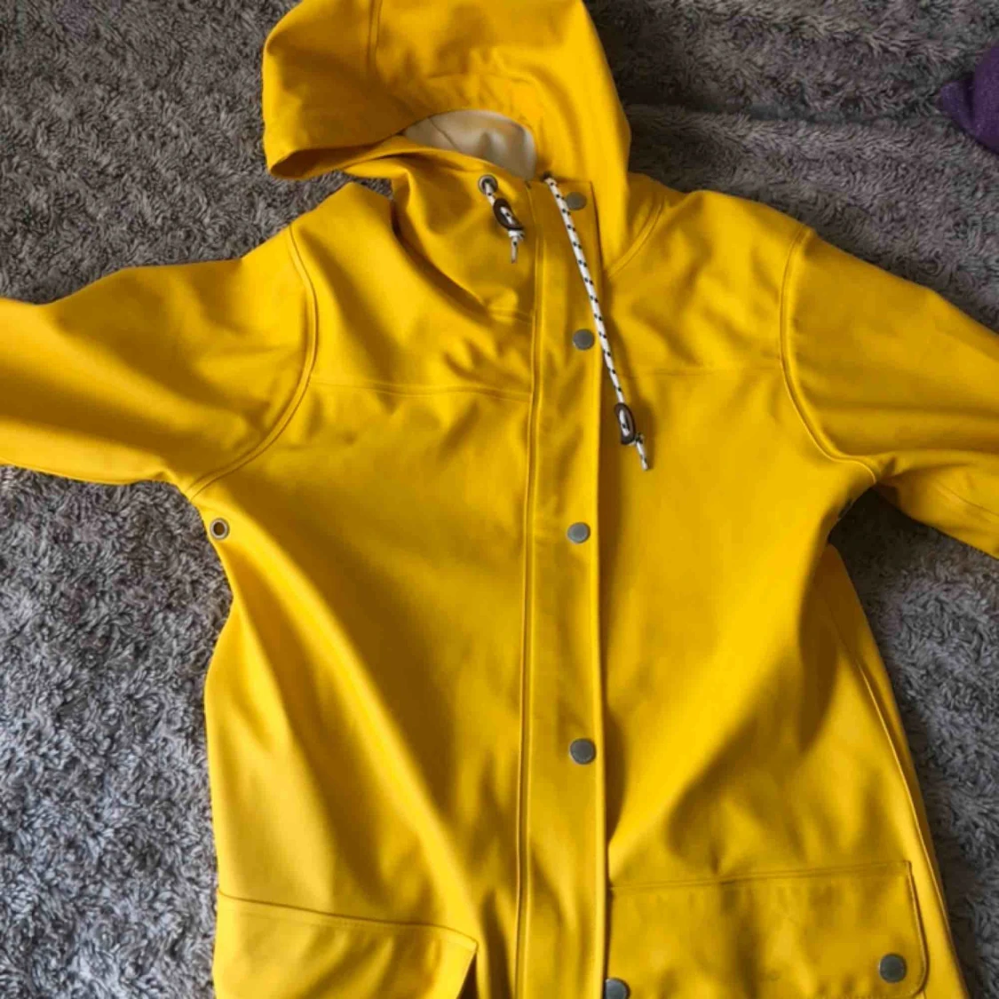 Gul regnjacka från etirel, har två stycken så fick sälja denna, asgo vet inte vad med det finns att skriva, möts upp i gbg eller kund betalar frakt