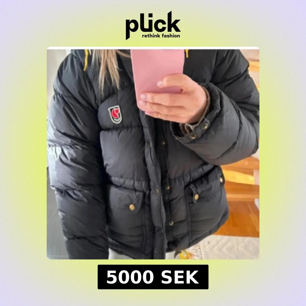 Svart dunjacka från Fjällräven  - !!!Pris kan diskuteras vid snabbt köp!!! Säljer en svart,  dunjacka från Fjällräven med klassisk röd logga på bröstet. Jackan har stora fickor med knappar, gul snörning nertill och en rejäl huva. Perfekt för kalla dagar och riktigt mysig att bära. Nypris runt 10 000 då den är gammal modell!!! Så därmed priset men skulle gå o diskutera🫶