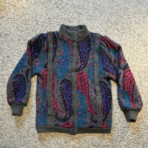 En 80/90-tals jacka med axelvaddar och extravaganta färger. Utsidan är helt spotless. På insidan har det rispats upp vid ärmarna, enkelt att laga.