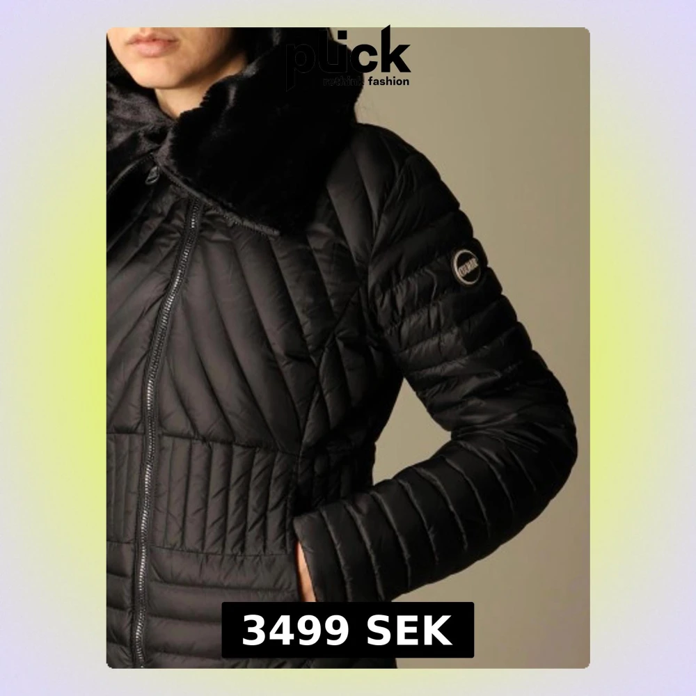 Säljer en svart dunjacka från Colmar med quiltad design och stor, mjuk krage i fuskpäls. Jackan har dragkedja framtill, sidofickor och Colmar-logga på ärmen. Perfekt för kalla dagar och riktigt snygg till alla outfits. Free gift box when you buy before christmas
