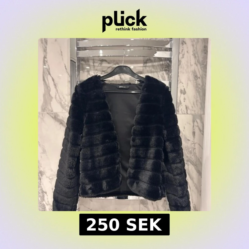 Säljer en svart fluffig jacka i storlek XS. Den har små spännen så man kan knäppa fast den. 💗