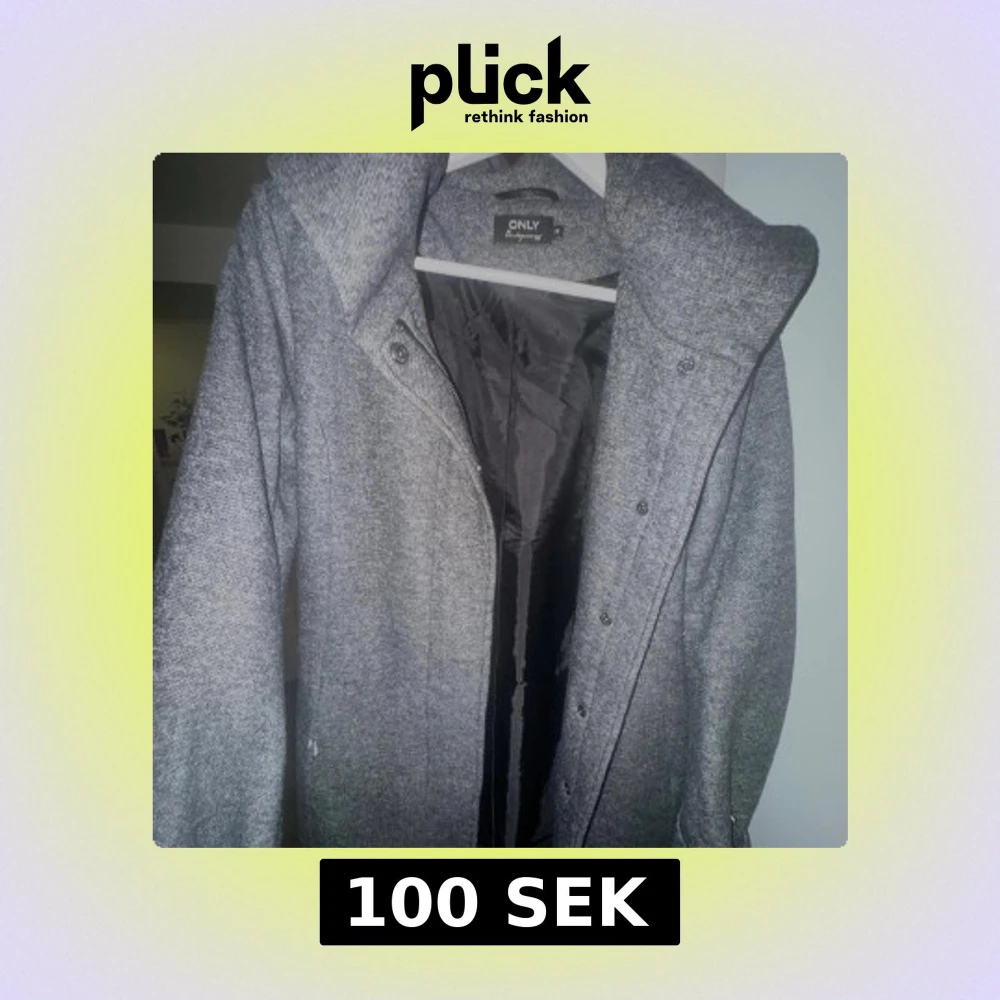 Säljer en snygg grå kappa från ONLY i storlek XS. Jackan har en stor huva, knappar framtill och är helfodrad. Materialet är mjukt och känns ulligt, perfekt för kyliga dagar. Har en ficka. Defekt bild 3: sönder precis vid fickan, men hindrar inte funktionen.