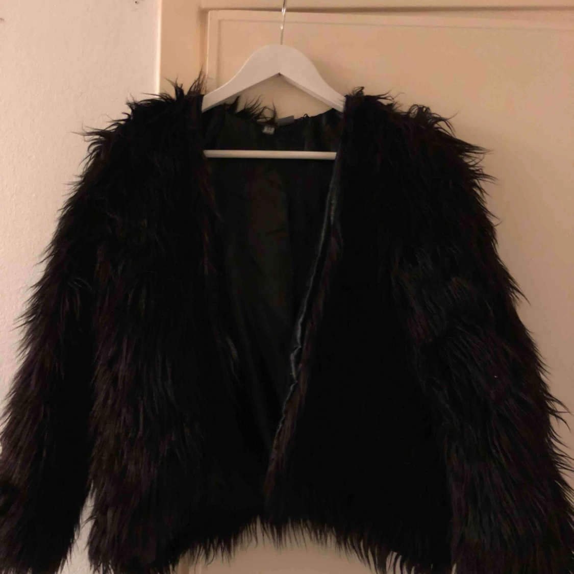 Svart kort fuskpälsjacka i fint skick, storlek 36. Köparen står för frakten.