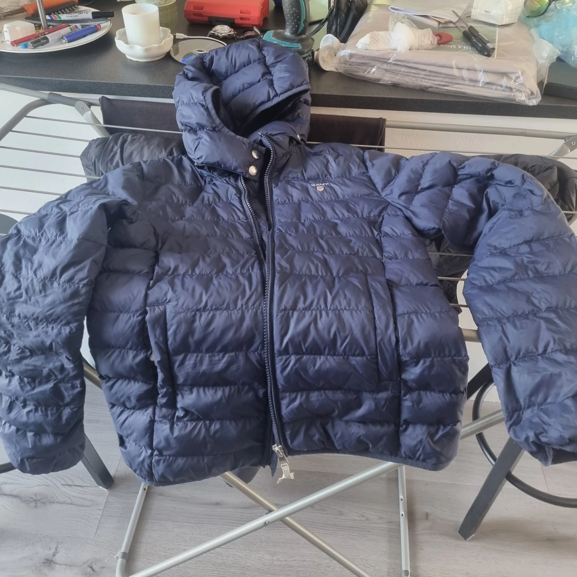 Säljer en snygg mörkblå dunjacka från GANT i mycket bra skick. Jackan har en dragkedja framtill och en mysig huva. Perfekt för höst och vinter, håller dig varm och stilren. Passar för både vardag och lite finare tillfällen. 🧥✨