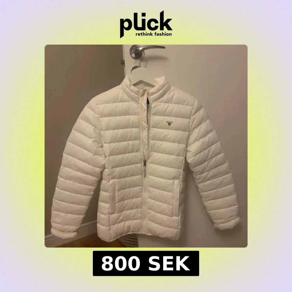 Säljer en stilren vit dunjacka från Gant, helt oanvänd. Jackan har en dragkedja framtill och är långärmad med en normal passform.