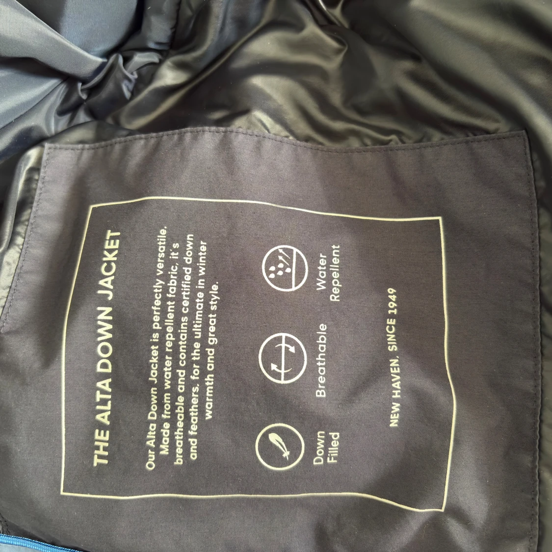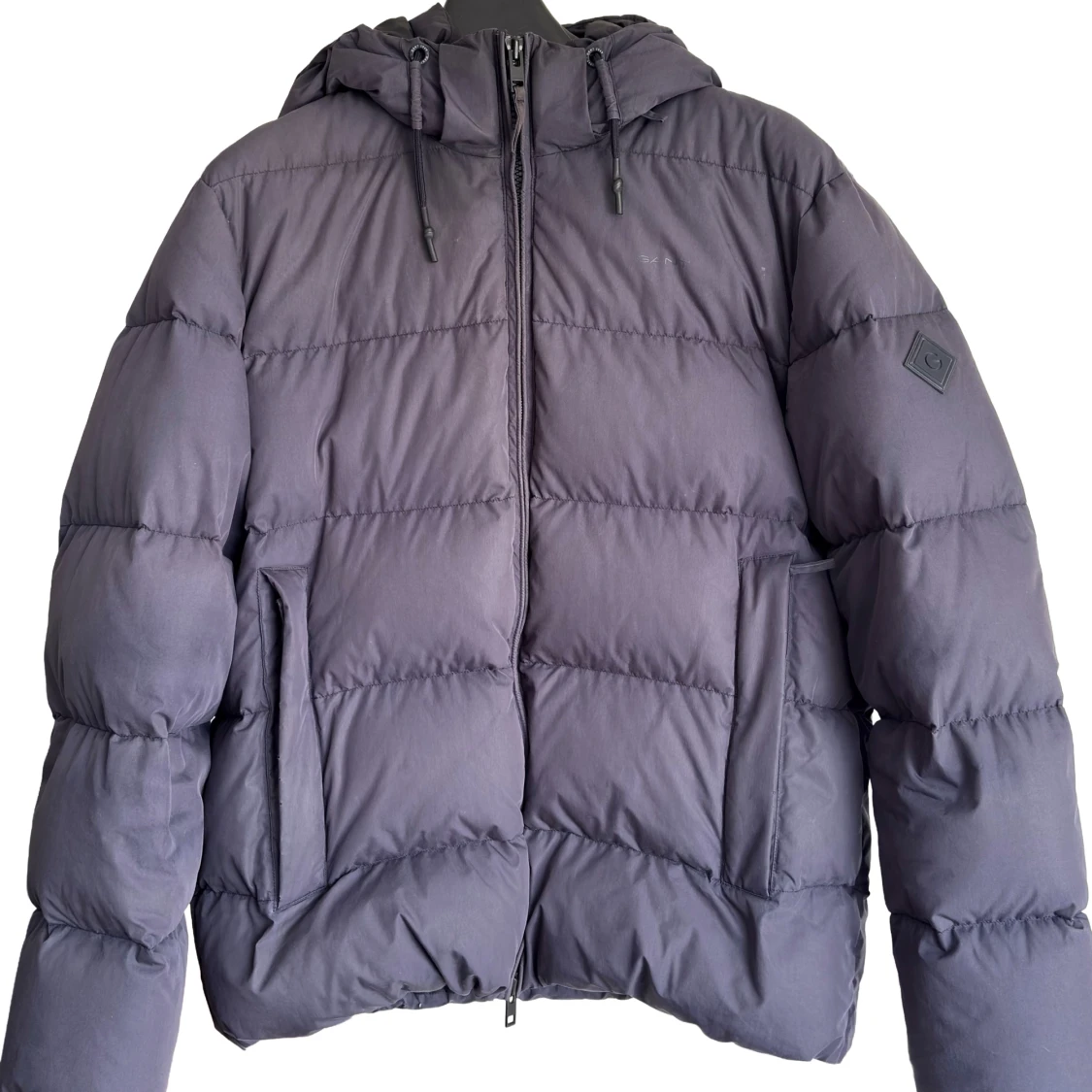 Säljer en blå pufferjacka från Gant, modell Alta Down Jacket. Jackan har huva, dragkedja framtill och stora fickor. Fylld med dun och fjädrar, vattenavvisande och andas. Perfekt för kalla vinterdagar och riktigt skön att bära.