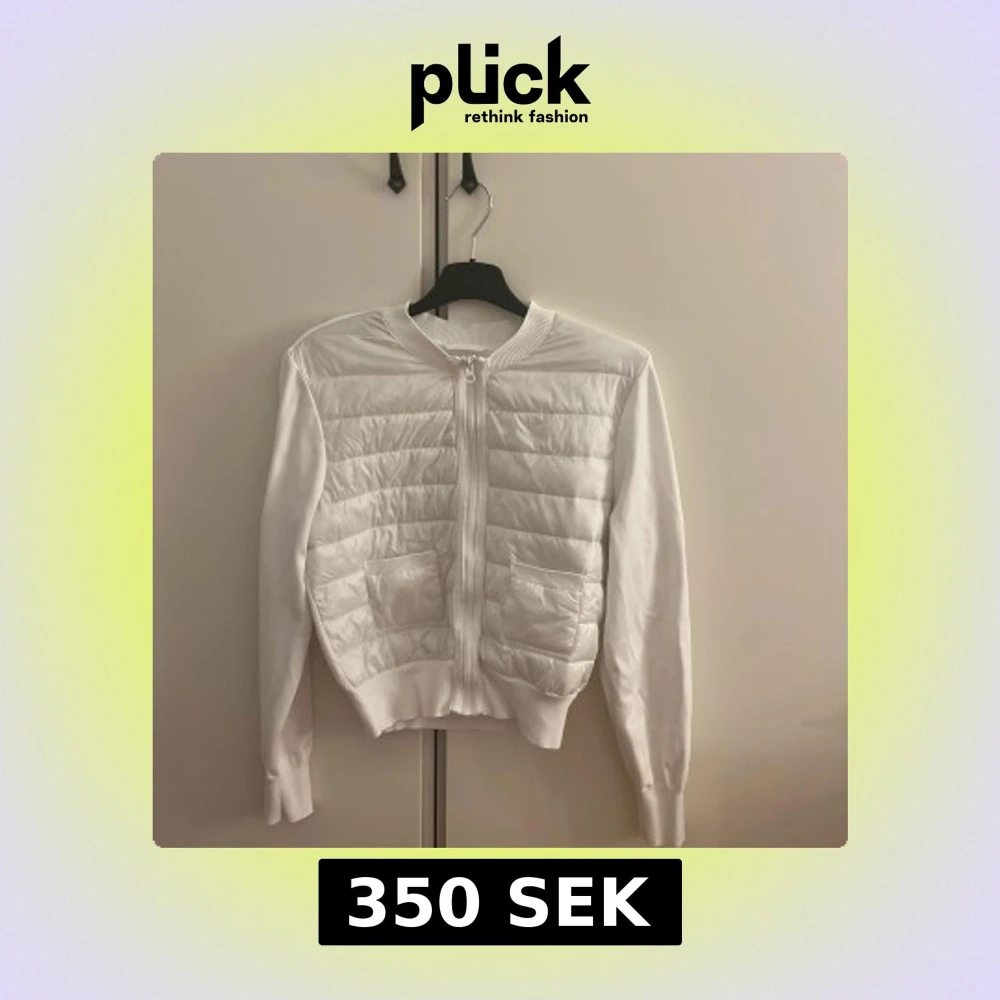 Snygg vit pufferjacka från Gina Tricot med quiltad framsida och två praktiska fickor. Jackan har ribbad krage och muddar, samt dragkedja framtill. Perfekt för dig som gillar stilren och clean look.