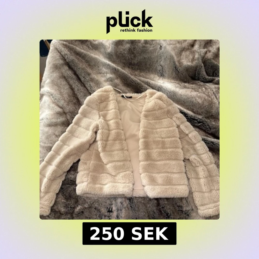 Mysig beige pälsjacka/kofta från Gina Tricot. Jackan har en fluffig textur. och är perfekt för kyligare dagar. Passar båda inne och ute.