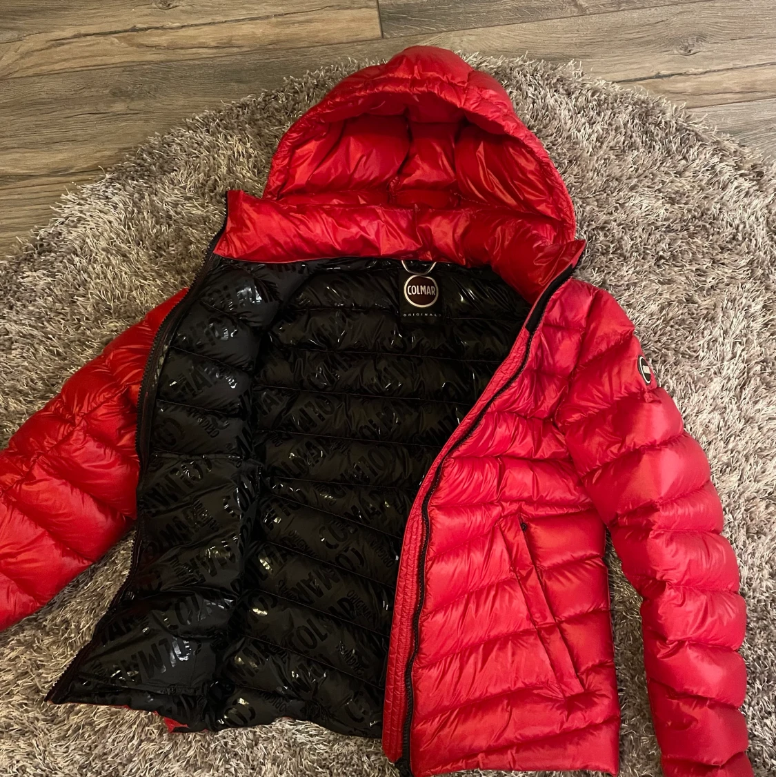 ”Colmar Men’s Down Jacket Glossy” Storlek 48, motsvarar herr small Köpt ca ett år sedan och knappt använd, trivs inte i färgen. Inga skador alls, missfärgad i kragen men går garanterat bort om man gnuggar lite. Nypris 6 299kr Kan skicka!
