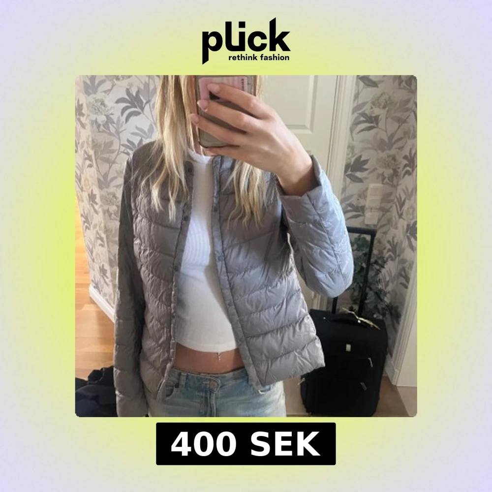 Säljer en stilren grå dunjacka från Uniqlo. Jackan har en lätt och bekväm passform med långa ärmar