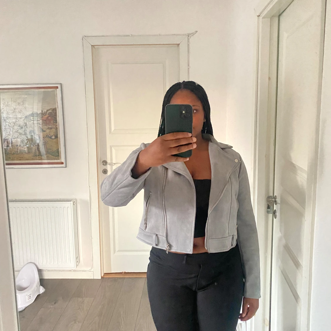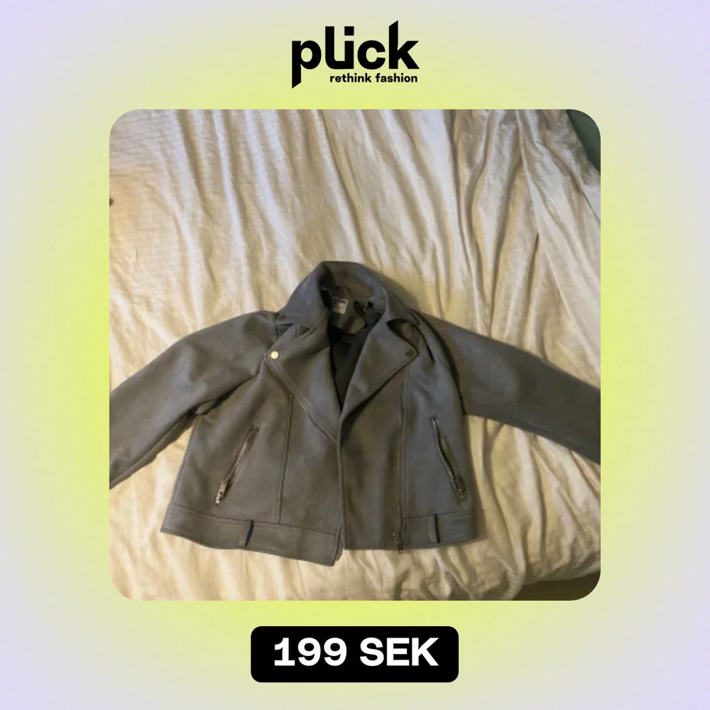 kort grå jacka i storlek L men är som en M eftersom den är liten i storleken använd 3 gånger.