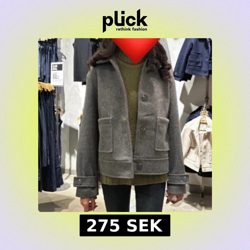 Snygg grå ulljacka med knappar och stora fickor framtill. Jackan har en klassisk krage och långa ärmar med knappdetaljer vid ärmsluten. Perfekt för kyligare dagar.