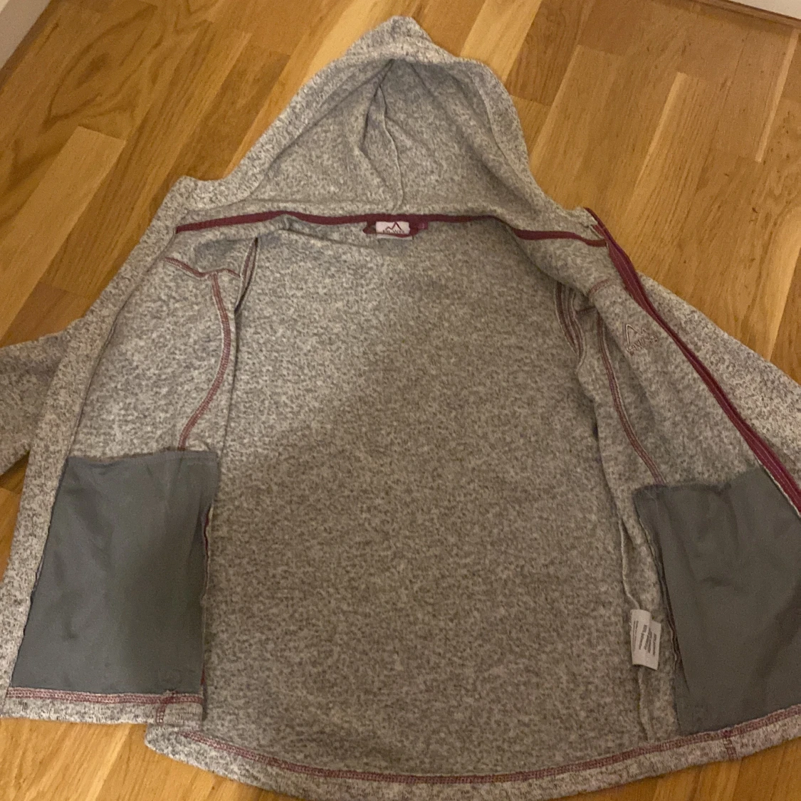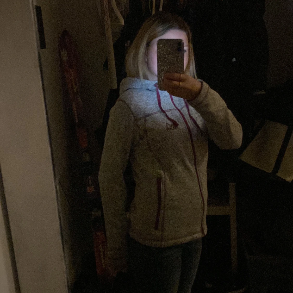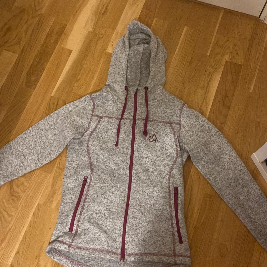 Aldrig använt när jag väl fått den men den är i perfekt skick och inga skador. En jättefin jacka att ha nu på hösten eller vintern men har valt att sälja den då jag tycker att den inte passar mig❤️ Den är grå med vinröda dragkedjor och detaljer💕