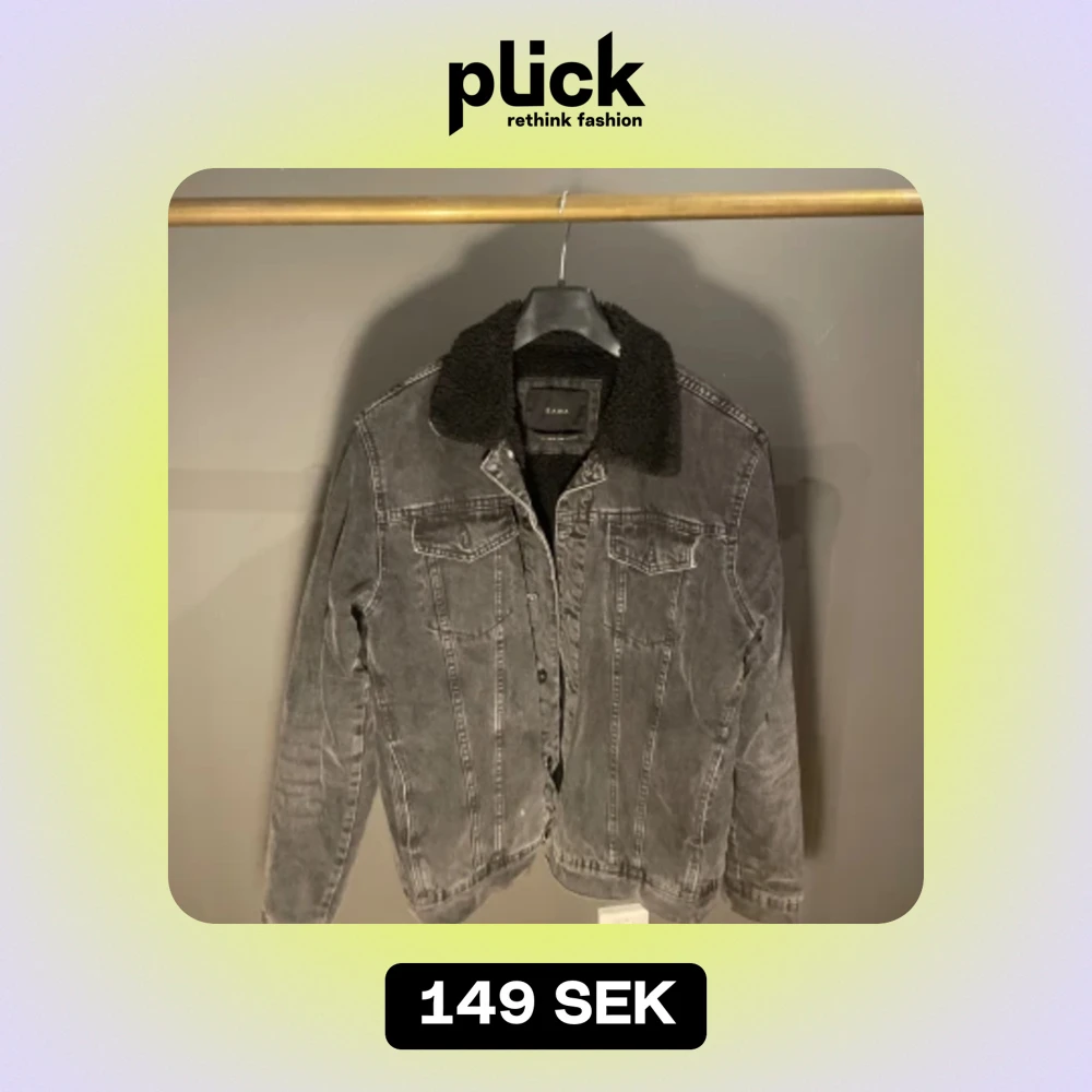 Säljer en snygg grå jeansjacka från Zara med en mysig svart fuskpälsfoder. Jackan har långa ärmar och knappar framtill. Perfekt för höst och vår!