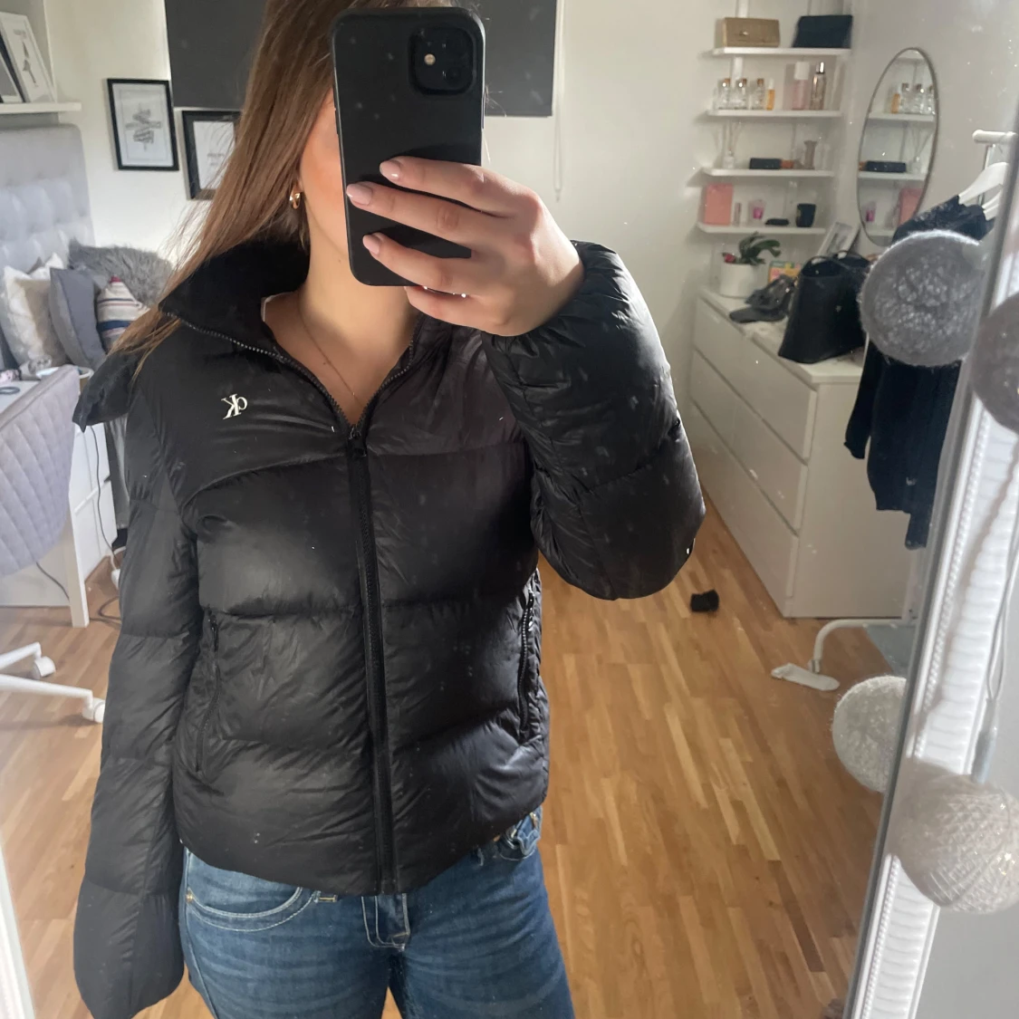 Säljer en svart pufferjacka från Calvin Klein Jeans med huva och dragkedja framtill. Jackan har diskret CK-logga på bröstet och två fickor med dragkedja. Perfekt för kyliga dagar och riktigt snygg till jeans. Jackan har haft ett hål som nu är fixat💕 köpte för 2499kr