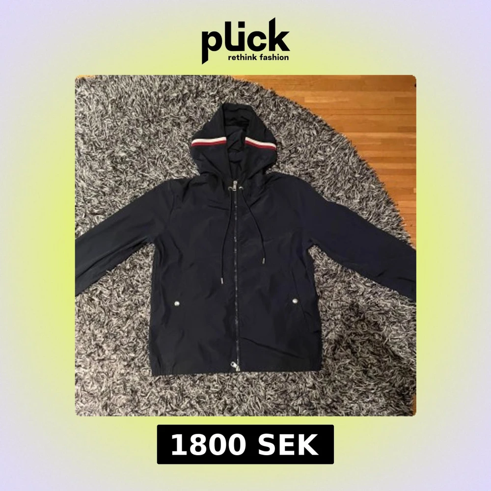Snygg svart vindjacka från Moncler med huva och dragkedja. Jackan har långa ärmar och en stilren design med Moncler-logga på ärmen. Perfekt för blåsiga dagar. Byter gärna!!