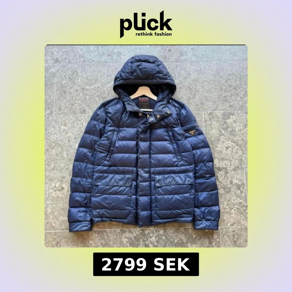 Prada pufferjacka - Säljer min Prada Dunjacka. Storlek 52 vilket motsvarar XL. Passar folk som bär L-XL. Marinblå färg.  Använd 3-4 gånger och är som i nyskick. Nypris 10000kr