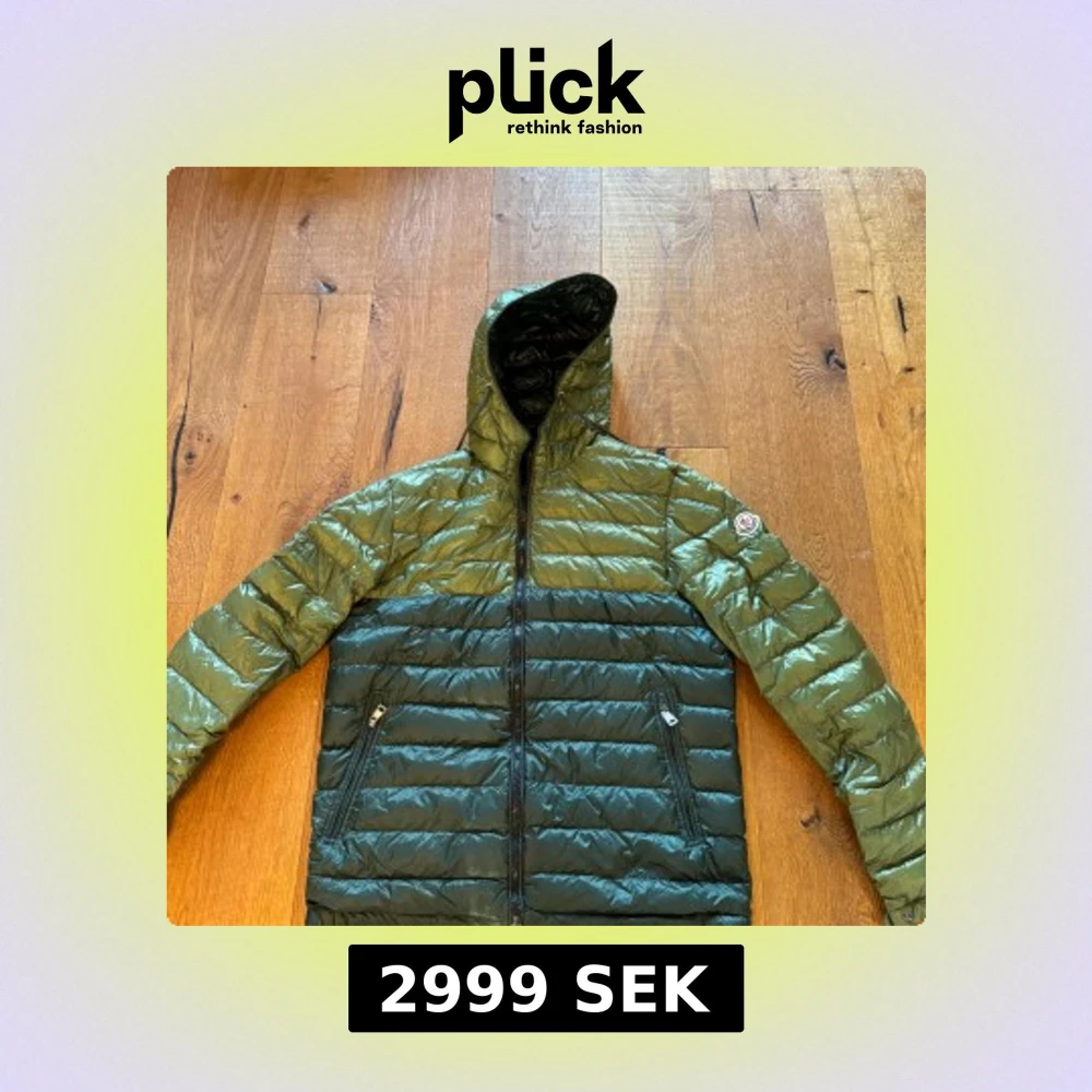 Snygg grön dunjacka från Moncler med huva och dragkedja. Jackan har ett quiltat mönster och två praktiska fickor med dragkedjor. Perfekt för kyligare dagar. Storlek 4 motsvarar M liten L. Hör av er för frågor eller funderingar