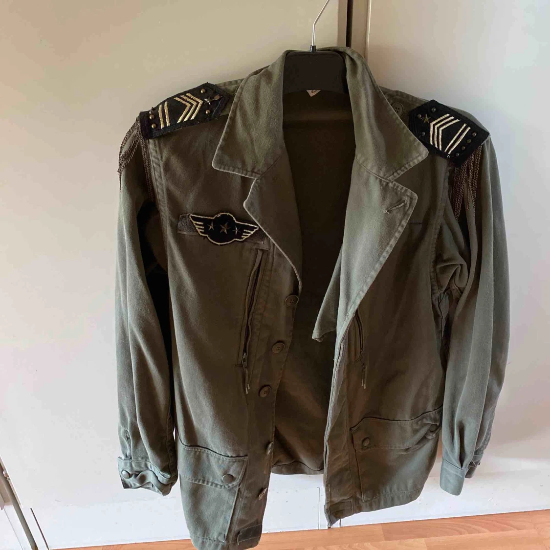 Army jacket med snygga detaljer på axlar & rygg säljes. Perfekt skick! Använd Max 5ggr. 🌟 hämtas helst upp i Gbg men kan även postas!